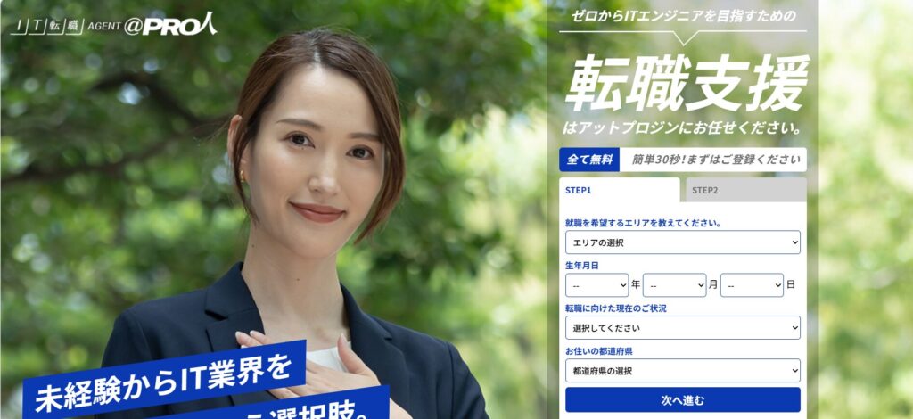 キャリアアドバイザーが学習ロードマップを一緒に作成し、ポートフォリオ添削も実施。インフラ志望・開発志望どちらにもスキルを身につけたい第二新卒に向いています。